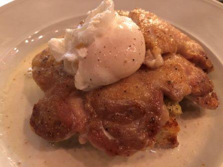 On vient là goûter au comptoir les idées du moment, même si les dites idées sont souvent empruntées à ses maîtres, comme la fameuse « black plate » de Jean-Georges à NY devenue ici la « sea food » pizza avec sa pâte fine et exquise à l’encre de seiche, avec saint-jacques, crevettes, crème de chèvre, thym, huile pimentée. La soupe aux noix de macadamia, le sashimi de thon, avec sa vinaigrette citronnée, son quinoa croustillant et sa réduction de sauce soja, comme le poulet « décadent », qui est une volaille croustillante revue comme un riche cordon « bleu » nouvelle vague, avec laitue grillé, brioche, œuf poché et crème de truffe, sont amusants, généreux, séducteurs.