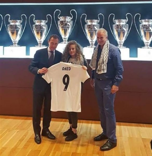 El Real Madrid ha recibido en el Santiago Bernabéu a Ahed Tamimi, la menor convertida en un símbolo mundial de la causa palestina tras ser detenida y juzgada por un tribunal militar en Israël trib.al/ZdtL1Hs