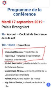 Ceux qui demain voudront participer à cette Conférence internationale de Paris pour la paix et la solidarité. Quoi ? Haïm Korsia irait ? Au nom du dialogue interreligieux ? Quoi ? Notre Président en ferait l’ouverture ? De la conférence[2] coorganisée par la Ligue Islamiste Mondiale, cet outil prosélyte créé en 1962 par l’Arabie saoudite et le père de Ramadan ??? Et Edouard Philippe la clôturerait ?