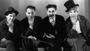 Ensemble, ils vont tourner 16 films, mais Groucho en tournera 23 et son personnage s’imposera : démarche curieuse à grands pas, moustache et sourcils imposants et éternel cigare mâchonné. Pourrait-il encore nous livrer ses jeux de mots et ses calembours, dit avec un fort accent judéo-newyorkais, tant ils sont machistes, pleins d’une indifférente goujaterie qui, dans les années d’avant-guerre à fait la joie d’un public de plus en plus grand. Mais, après-guerre, le monde a changé et la carrière de Groucho s’essoufle. Elle se terminera en 1957. On le retrouve alors sur le petit écran pour un « Groucho show » qui connaît un grand succès.