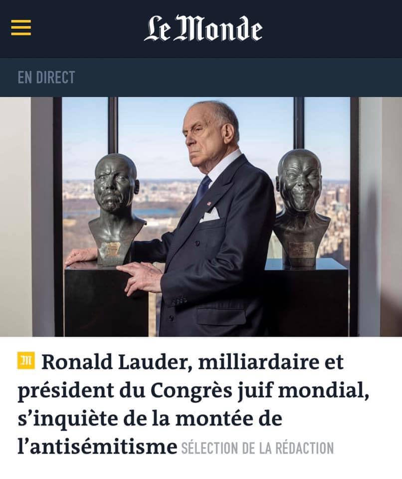 « Pourquoi titrer dans l’accroche de Une « Ronald Lauder, milliardaire et président du Congrès juif mondial » ? Dirait-on « Bernard Arnaud, milliardaire et soutien catholique » de je ne sais quoi ? Cet article est ambigu, probablement comme son auteur. Etrange.«