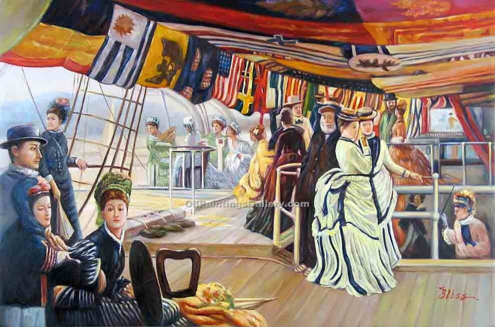La quête s’achève à Londres sur cette œuvre de James Tissot The ball on the Sipboard, réalisé par l’artiste vers 1874.
