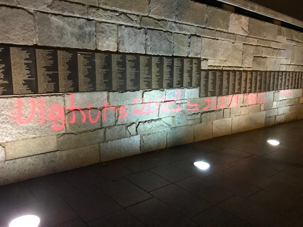 Certes Tout a été nettoyé et moins Une, nul n’en aurait eu vent: l’essentiel n’est-il pmas que les Cérémonies se tiennent en temps et en heure. Et puis, Ce ne sont pas des tags antisémites, a insisté Sammy Ghozlan, président du BNVCA… L’auteur des tags aura voulu dénoncer le génocide des Ouïghours et Ils ont profité de la visite des officiels pour avoir de la visibilité et lancer un appel au secours… ( Sammy, Oh Sammy, Ressaisissez-vous )