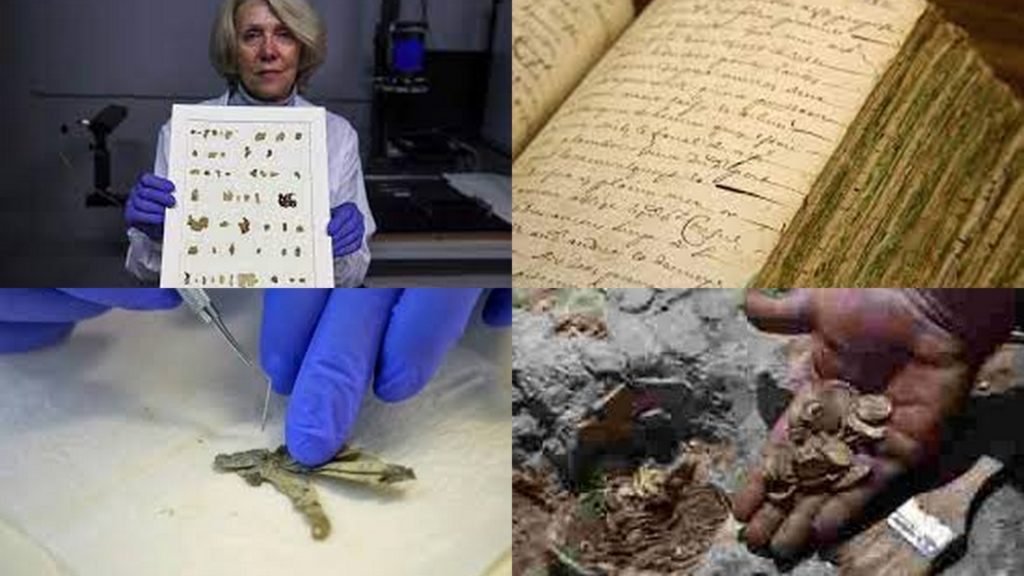 Outre les morceaux de parchemins, l’opération a mis au jour des pièces rares remontant à la révolte juive de Bar Kokhba contre les Romains (132-136 après J.-C.), mais aussi un squelette d’enfant momifié vieux de 6.000 ans et drapé dans un tissu, ainsi qu’un panier datant de 10.500 ans, probablement le plus vieux du monde, estime l’AIA.