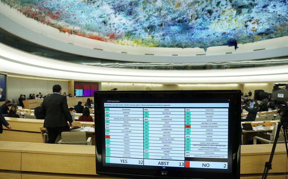 32 votes pour, 2 contre. Le Conseil des droits de l’homme de l’ONU a approuvé aujourd’hui à une écrasante majorité une résolution pour lancer une enquête internationale sur les violations des droits de l’homme et atteintes à ces droits résultant de l’agression de la Fédération de Russie.