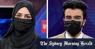 Les lecteurs de journaux masculins portent des masques en signe de protestation alors que les talibans imposent des restrictions aux présentatrices de télévision