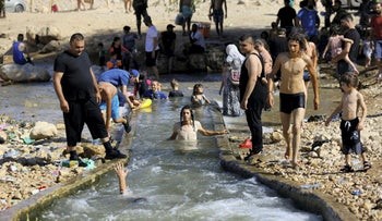 Palestiniens et israéliens dans les sources d’al-Oja près de Jéricho, la semaine dernière. Crédit : Mohamad Torokman/Reuters