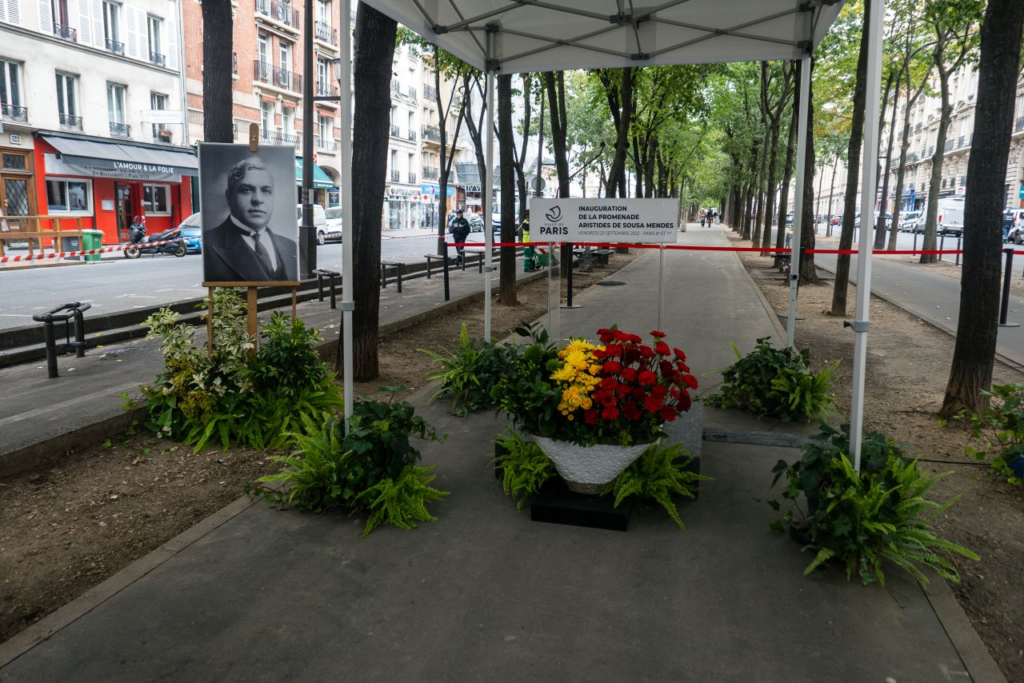 La Maire de Paris Anne Hidalgo et le Maire de Lisbonne Carlos Moedas ont inauguré une promenade en mémoire d’Aristides de Sousa Mendes, diplomate portugais et Juste parmi les Nations, boulevard des Batignolles (17e), le 23 septembre 2022 à 17h15.