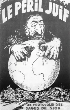 Dans cette vision, une « race juive« , dominatrice et conspiratrice, entend régenter l’humanité tout entière. Le conflit entre Juifs et non‑Juifs se déplace du terrain religieux à la race, cette obsession occidentale de la seconde moitié du XIXe siècle. En 1932, dans Les Juifs, maîtres du monde, le directeur de la Revue internationale des sociétés secrètes, le vicomte Léon de Poncins, écrit: « Quinze millions d’hommes, hommes intelligents, hommes tenaces, hommes passionnés, unis, malgré leurs divergences intestines, contre le monde des non‑Juifs par les liens de la race, de la religion et de l’intérêt, mettent au service d’un rêve messianique le plus froid des positivismes et travaillent, consciemment ou inconsciemment, à instaurer une conception du monde antagoniste de celle qui fut pendant 2 000 ans l’idéal de la civilisation occidentale. 15 millions d’hommes qui ont sur l’opinion publique une influence hors de toute proportion avec leur importance numérique parce qu’ils occupent les centres vitaux de la pensée et de l’action occidentales« .
