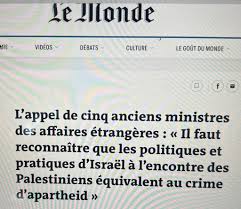 Nous retiendrons cette récente tribune signée de « cinq anciens ministres des affaires étrangères » (en réalité quatre puisque l’une des cinq signataires, Sayeeda Warsi, n’a jamais porté ce titre) accusant Israël de « crime d’apartheid ».