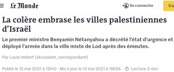 En les « palestinisant », Le Monde importe le prisme par lequel la presse voit le conflit dans les territoires disputés et le plaque sur tout Israël. Le quotidien est même allé jusqu’au bout du raisonnement en faisant de certains habitants juifs de ces villes israéliennes internationalement reconnues des colons.
