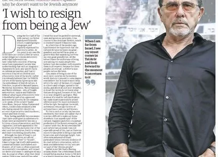 « Vivre dans une telle société m’est devenu insupportable, mais, je l’avoue, il ne m’est pas moins difficile d’habiter ailleurs. Je fais partie du produit culturel, linguistique et même mental de l’entreprise sioniste, et je ne peux m’en défaire » (2014 :135 )