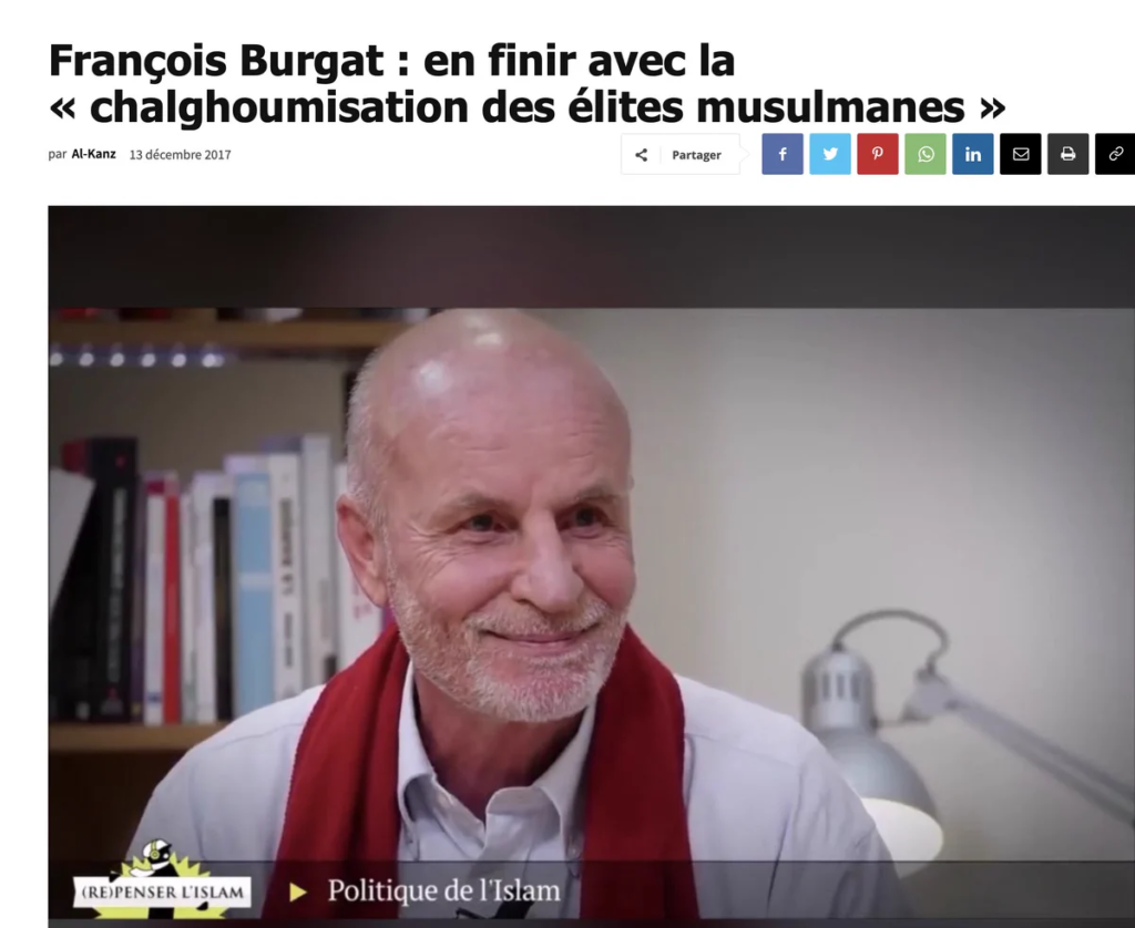 Le nom de ce Burgat reviens regulierement des qu on aborde l entrisme islamiste en France , il est protegé par le systeme et ultra agressif .