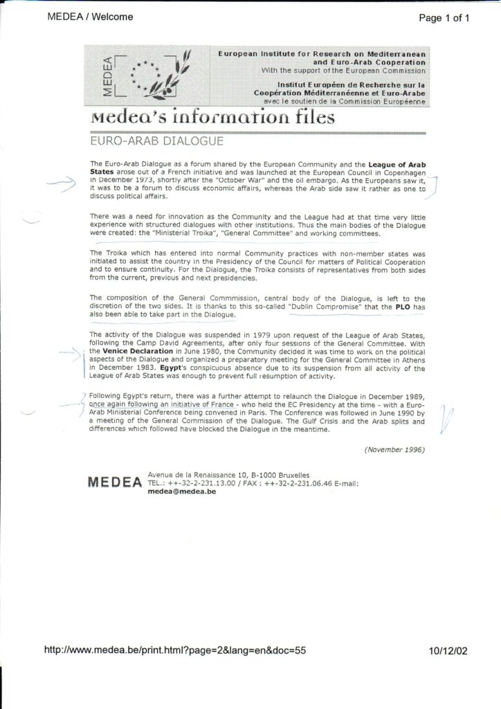 Cette politique initiée par le Dialogue Euro-Arabe (1974) se renforça après la révolution khomeyniste (1979) qui fit craindre à l’Europe de manquer de pétrole. Mais son souci majeur provenait de la glaciation de ses relations avec la Ligue arabe après la paix séparée égypto-israélienne qu’elle avait reconnue à contre-cœur alors que l’OLP et la Ligue arabe avaient rompu leurs relations avec l’Egypte. Pour se racheter de ce méfait elle produisit la déclaration de Venise (1980)[6].