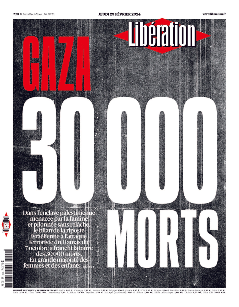 Vils Libération, France Info, qui nous balancent depuis ce matin les « 30 000 morts » « selon les chiffres du Hamas.