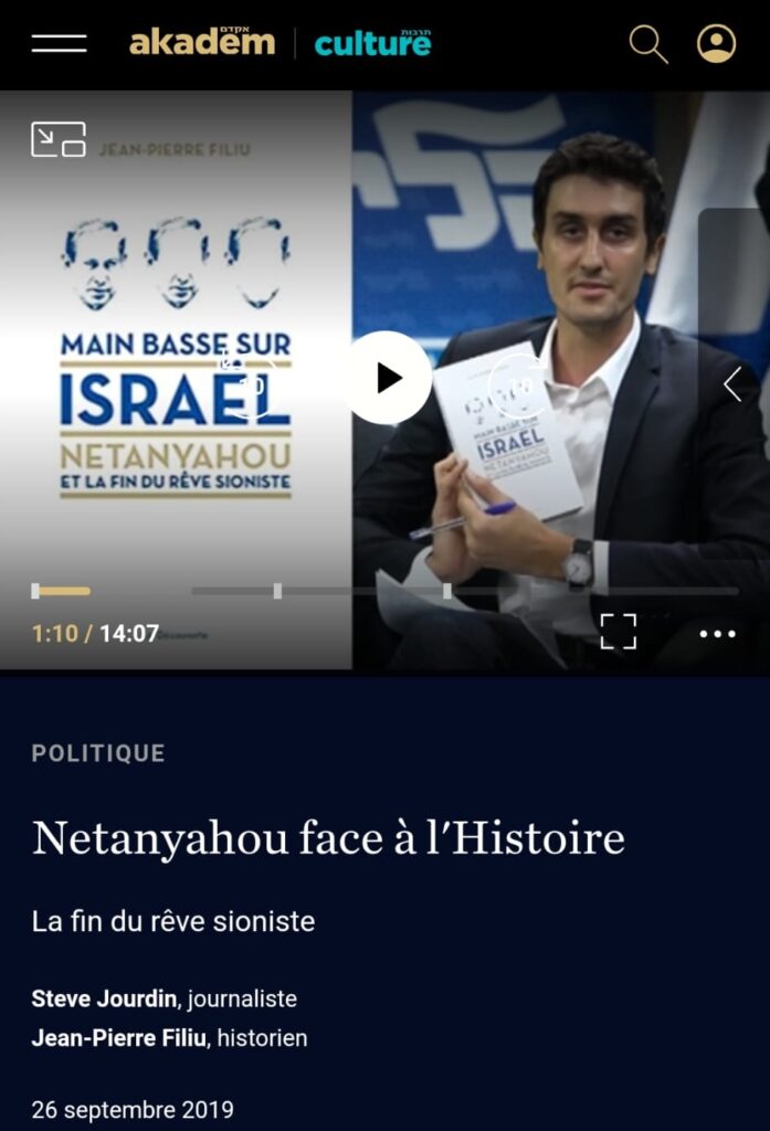 Dans cette foulée, on peut mentionner aussi l’ancien ambassadeur de Palestine…, pardon… d’Israël, en France, Elie Barnavi, également universitaire proche de ces personnes et sollicité par les mêmes médias, TV Hamas et Akadem, entre autres. Et dernièrement, on l’a vu intervenir pour le très sioniste Mediapart.