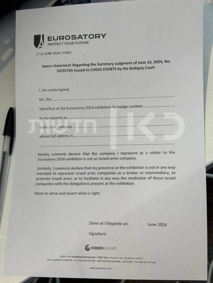 Dans la France d’aujourd’hui, le boycott d’Israël – illégal en vertu de la loi française – est ouvertement pratiqué par le gouvernement, à l’encontre de sociétés israéliennes qui se voient interdire l’entrée du salon Eurosatory. Un tribunal français a légitimé ce nouveau Statut des Juifs (dirigé pour l’instant contre les seuls Juifs israéliens), en ordonnant de placarder sa décision inique sur les portes d’entrée dudit salon. Mais ce matin, nous avons gagné.