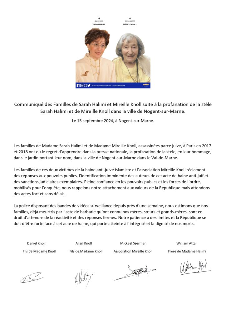 En tant qu’avocat d’E. Halimi et de la famille Knoll , je veux dire mon dégoût pour ce tag qui souille le jardin Sarah Halimi -Mireille Knoll . Rien ne m’étonne plus depuis le 7/10 et la propagande de la France Insoumise qui excite cet islamisme qui a tué les deux femmes . https://t.co/XR4wXMP2lD