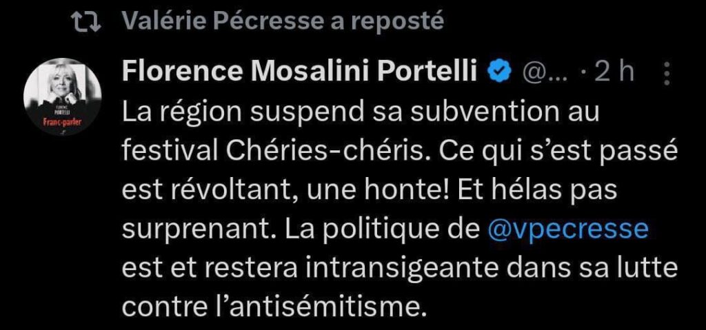 La région Île de France, partenaire, a décidé de suspendre sa subvention !!!