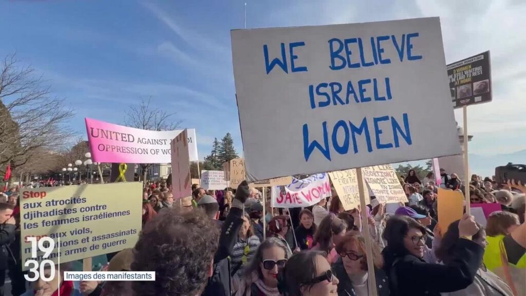 « On a été stigmatisées et empêchées de manifester car nous avons été identifiées comme juives », dit Mélissa Elkaïm, avocate à Lausanne, présente à la manifestation. C’était l’occasion de pouvoir dénoncer et rappeler les atrocités faites aux femmes israéliennes. Je tiens à souligner qu’on n’avait absolument pas de slogans politiques, ni drapeau israélien […] On a été identifiées comme un groupe de femmes juives sans savoir quelles sont nos nationalités, notre religion. […] On a été stigmatisées et empêchées de manifester ».