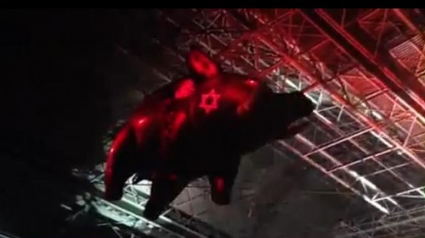 En effet, durant les derniers concerts du chanteur en Allemagne et aux Pays-Bas, a été projeté dans les airs un cochon gonflable à cornes, orné notamment de l’étoile de David, qui devra être détruit par le public à sa retombée.