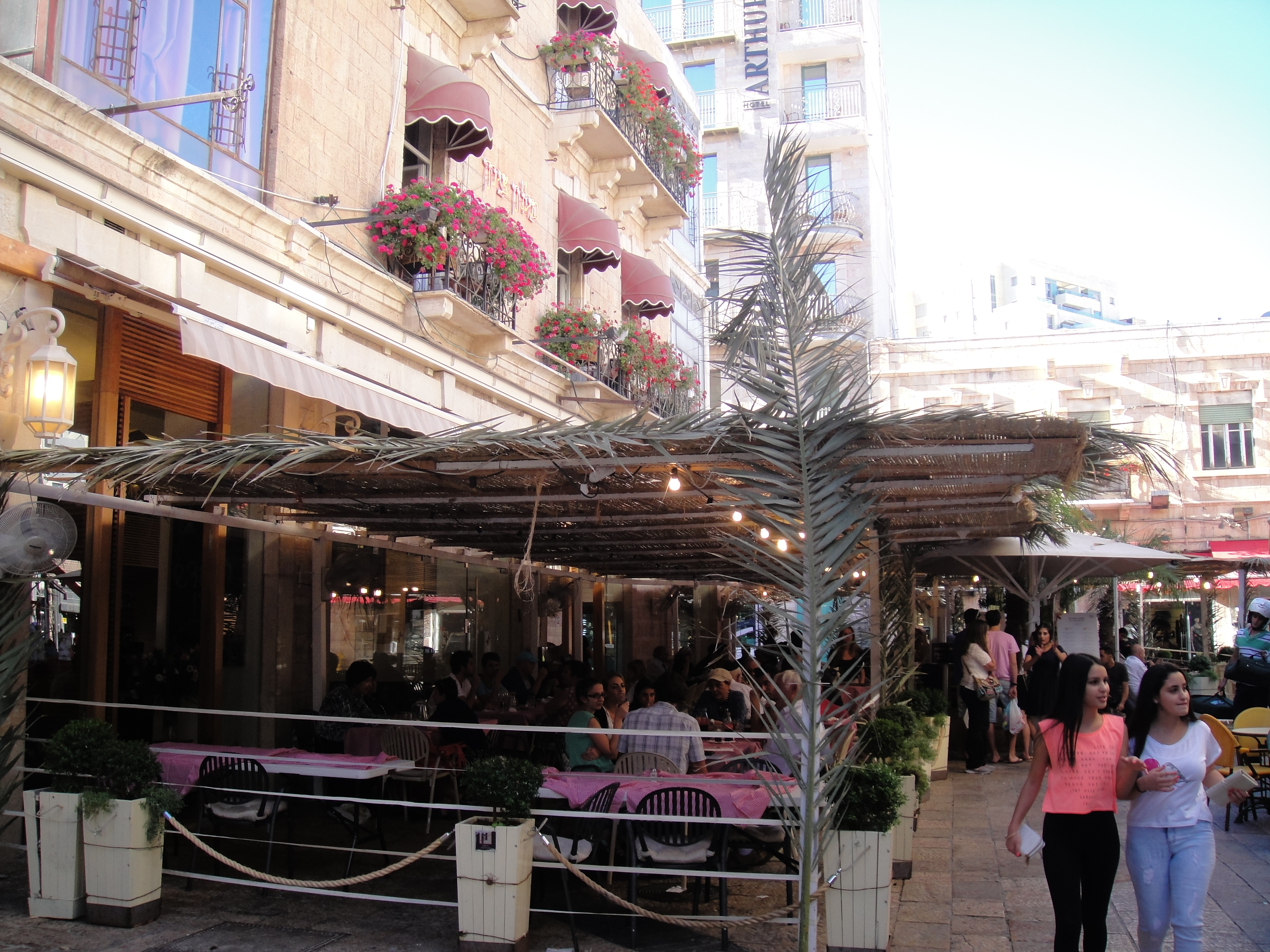 Le Café Rimon de Ben Yehouda a couvert toute sa terrasse d’une grande Soucca faite de feuilles de palmiers.