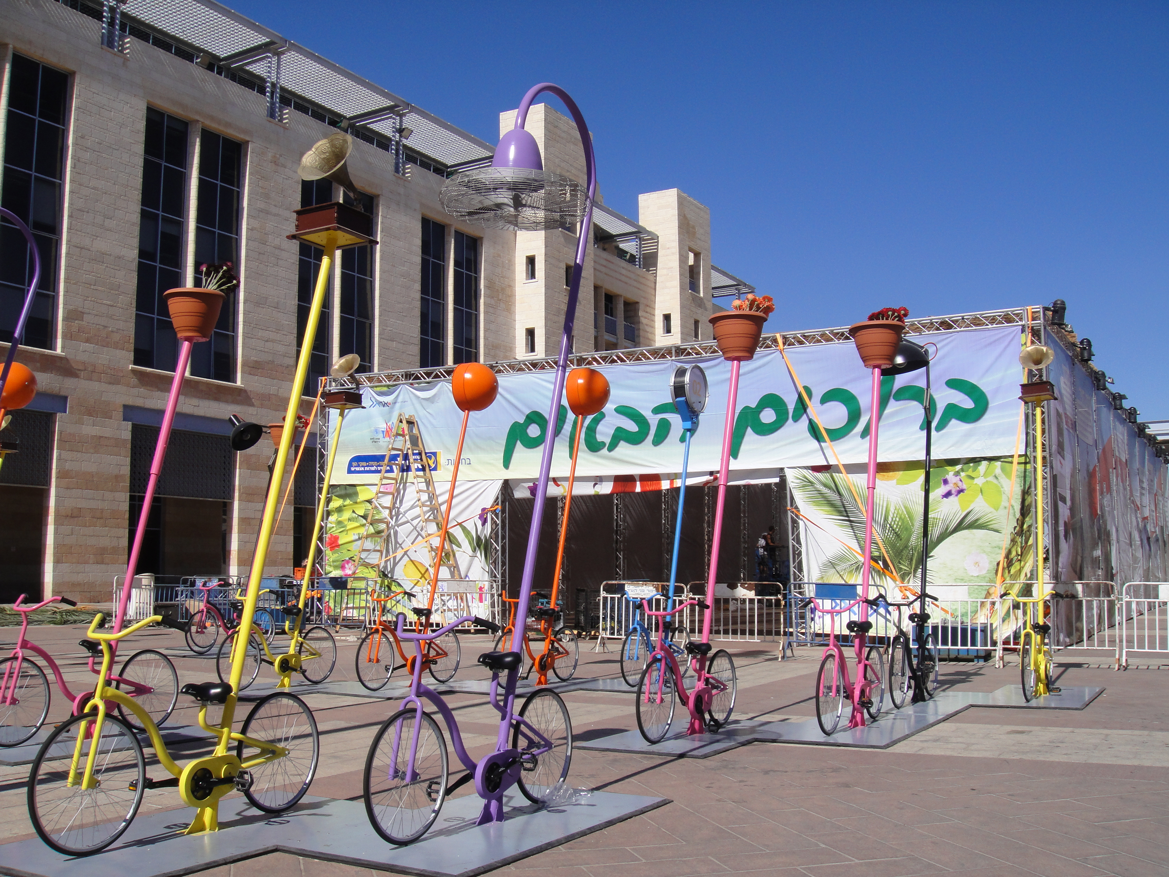 La Mairie de Jérusalem a construit sa Soucca sur sa grande place, offrant une attraction publique : l’énergie utilisée pour pédaler sur les vélos fait fonctionner des ventilateurs, des klaxons ou des ampoules, installés au dessus d’eux.