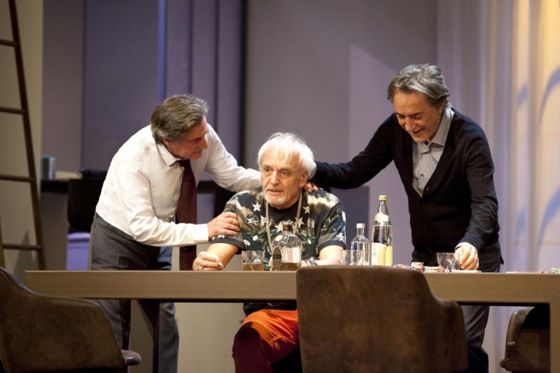 C’est la nouvelle pièce d‘Éric Assous : » Nos femmes ». La mise en scène précise et efficace est de Richard Berry.Trois hommes sur scène : Daniel Auteuil, Richard Berry , Didier Flamand . Il n’y a pas de femmes sur scène mais l’auteur dit qu’elles sont » très présentes dans l’intrigue « .Le public sourit, s’exclame , rit tout le temps et applaudit longtemps.