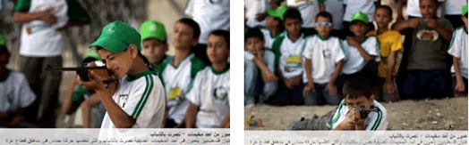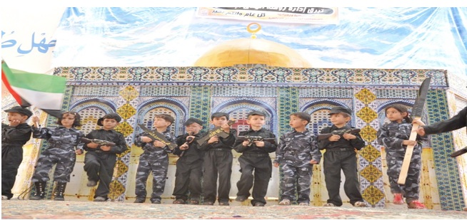 Dans la bande de Gaza, le Hamas, le Jihad islamique Palestinien (JIP) et les brigades al-Quds, s’occupent eux-mêmes des programmes scolaires. Ils organisent dès l’école maternelle des fêtes en tenue militaire avec fausses armes et défilés des enfants devant des cercueils. « Il est de notre obligation d’éduquer (…) à la résistance ». Dans les camps d’été, l’islamisme radical remplace les jeux et les sorties culturelles. Beaucoup d’écoles portent les noms des pires terroristes ou de leur famille comme celui de la fameuse Al-Khansah, la maman ‘’exemplaire’’ de trois fils martyrs.