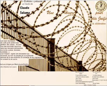 Lecture théâtrale de UNE HEURE POUR DIX JUIFS