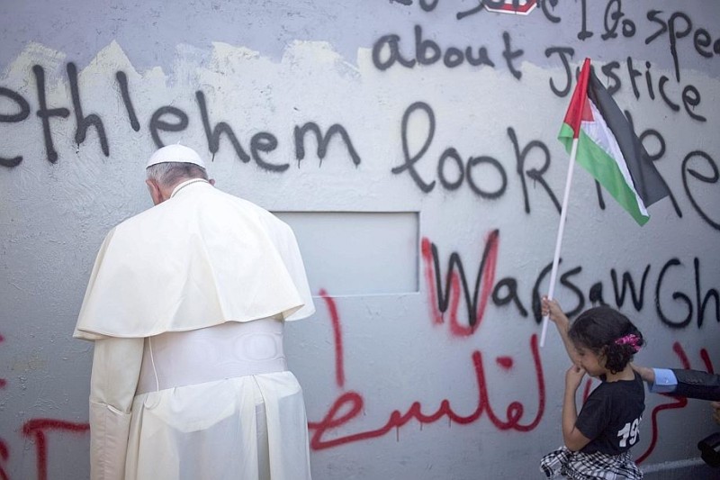 François a accompli ce geste impromptu sur le chemin de la place de la Mangeoire, où il doit célébrer une messe, peu après une rencontre avec le président palestinien Mahmoud Abbas qui l’avait pris à témoin du « mur hideux que construit Israël par la force brutale sur notre terre ».
