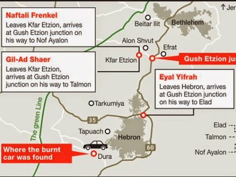 Le temps qui s’écoule conforte les inquiétudes des Israéliens sur l’issue de ce drame. Ils estiment que les ravisseurs tentent de quitter la Cisjordanie par la Jordanie pour atteindre ensuite Gaza. Le modus operandi prouve qu’il s’agit d’une opération rigoureusement préparée, réalisée par une cellule terroriste bien organisée. La disparition des jeunes a eu lieu à la jonction de Kfar Etzion, une zone propice à proximité de champs qui conduisent directement à des villages palestiniens voisins. Le village de Halhoul et la ville d’Hébron sont situés au sud de la jonction, tandis qu’au sud-ouest se trouve le village de Dura. C’est pourquoi des centaines de soldats, de parachutistes et de policiers participent à la battue autour des villages de Tufah, Bnei Naim, Yata, Halhoul, Beit Ayoun, et Doura. Un haut responsable militaire israélien a déclaré : « Nous pensons qu’ils ont été effectivement kidnappés par des activistes palestiniens présumés » sans donner d’autres précisions sur les auteurs de cet enlèvement.