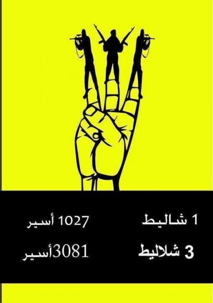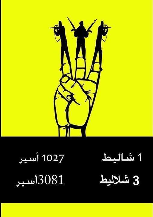 1 for 1027, 3 for 3081 1 Shalit = 1027 prisonniers, 3 Shalit = 3081 prisonniers