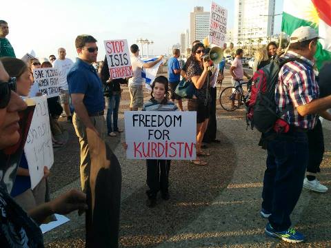 De nombreux israéliens, parmi lesquels on pouvait compter beaucoup de Juifs kurdes, se sont rassemblés mercredi devant l’ambassade américaine de Tel Aviv pour exprimer leur solidarité avec les chrétiens, les Yézidis, et les Kurdes, victimes de persécutions et de violences qui leur sont infligées en Irak par les groupes djihadistes.