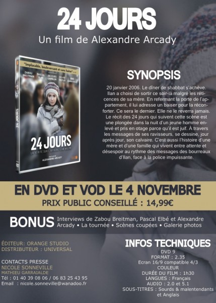 Ilan a choisi de sortir ce soir-là malgré les réticences de sa mère. En refermant la porte de l’appartement, il lui adresse un baiser pour la réconforter. Ce sera le dernier. Elle ne le reverra jamais. Le récit des 24 jours qui suivent cette scène est une plongée dans la nuit d’un jeune homme enlevé et pris en otage parce qu’il est juif. A travers les messages de ses ravisseurs, se dessine, jour après jour, son calvaire. C’est aussi l’histoire d’une mère et d’une famille qui vivent entre attente et désespoir au rythme des messages des bourreaux d’Ilan, face à la police impuissante.