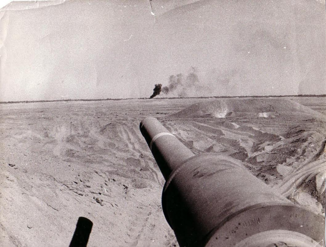 « Cette photographie montre la puissance d’un tank, qui est capable de toucher une cible à plus d’un kilomètre de distance. Dans cette image, on voit le canon de mon tank, et la fumée noire en arrière-plan est la cible que nous venions de toucher. »
