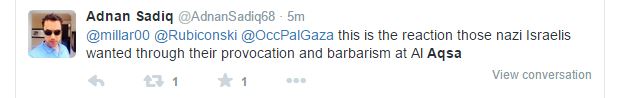 Ci-dessous un bref échantillon de certains d’entre eux. Certains tweets, dont le premier diffusé par Mohammed E. Jaber, ont été effacés rapidement, mais on les trouve encore comme screenshots.