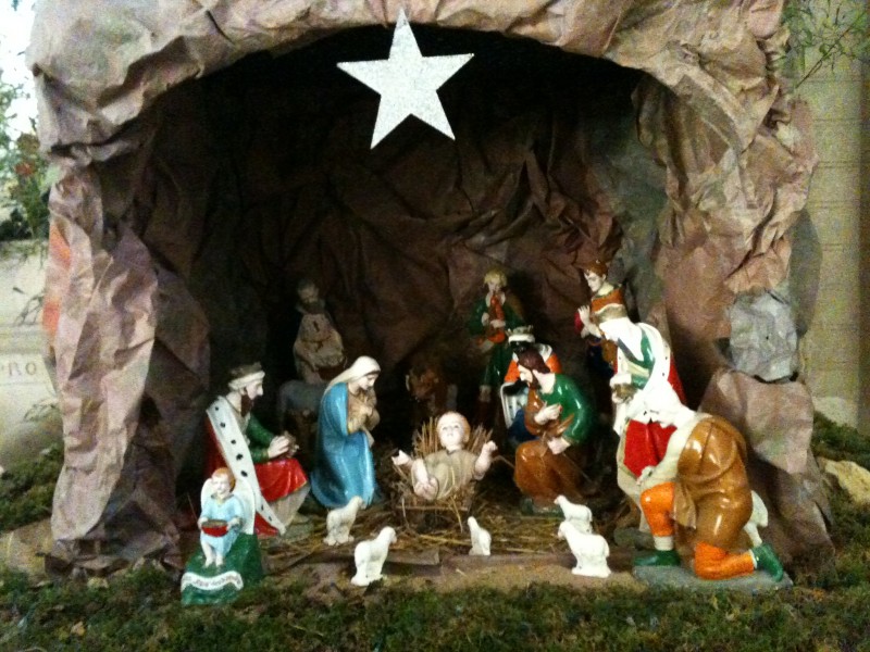 Et les crèches…Ma grand-mère française me prenant par la main pour me montrer les joues roses de l’enfançon couché devant l’église, et mon père, il y a quelques années encore, emmenant mes enfants en voiture faire le tour des crèches illuminant la petite ville paisiblement blottie dans les senteurs de Noël…D’aussi loin que je me souvienne, un immense sapin a aussi toujours dominé les places des nombreuses villes dans lesquelles j’ai habité : La Place Ducale de Charleville, le Vigan, à Albi, la Place du Capitole dans ma Ville Rose, la place de Jaude à Clermont-Ferrand…Orné d’une étoile guidant les enfants vers leurs rêves, il veillait sur cette atmosphère souvent, c’est incontestable, trop commerciale, rappelant aux petits et aux grands l’origine sacrée de cette fête millénaire…
