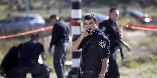 Policiers israéliens sur les lieux d’une agression au couteau Cisjordanie, le 1er décembre 2014. AP/Sébastien Scheiner