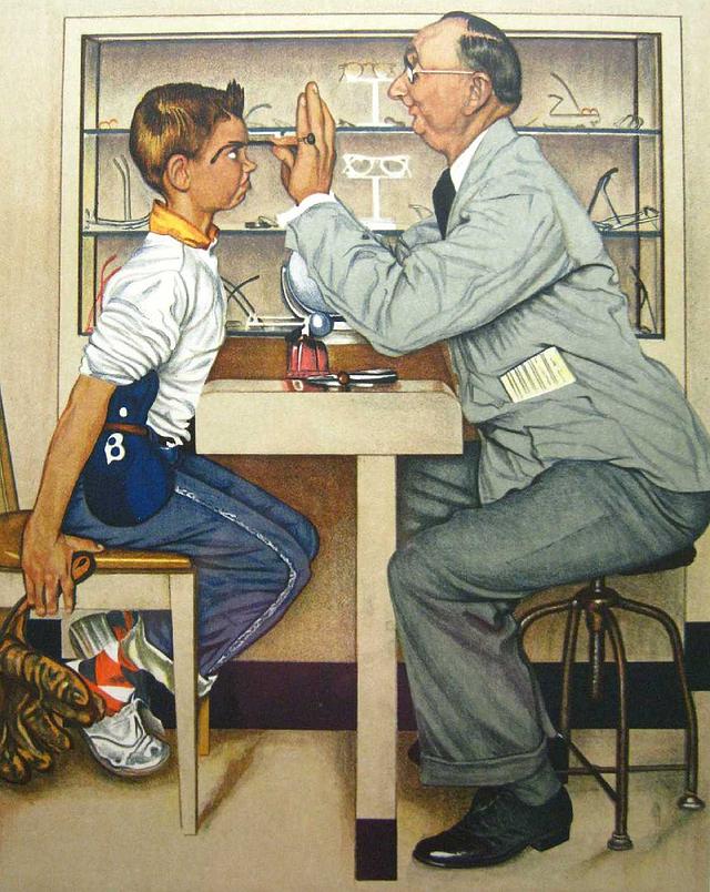 Témoignage emblématique de la vie quotidienne de l’Amérique des années 50, l’œuvre de Norman Rockwell peintre figuratif, devenu célèbre pour avoir illustre pendant près de cinquante ans, les couverture du plus grand magazine américain, le Saturday Evening Post, se montre avant tout comme un peintre de la vie urbaine qu’il dépeint avec humour, comme la photographie d’une scène instantanée, il utilisera d’ailleurs très tôt la photographie pour illustrer ses œuvres. Celle-ci lui permettra d’appuyer le réalisme de son travail. Norman Rockwell devient le peintre de l’Américain moyen. Peu à peu son nom est identifié à cette revue dont il réalise les plus célèbres illustrations et couvertures jusqu’en 1960.