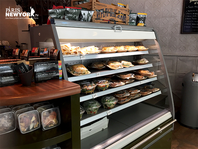 Tous les produits sont livrés par la fameuse Rachel : muffins, cheesecakes, tartelettes, cookies, bagels… Pour le café, la marque Illy les fournit pour l’expresso, tandis que le café filtre à l’américaine (et à volonté comme à New York !) est facturé 1,50 €.
