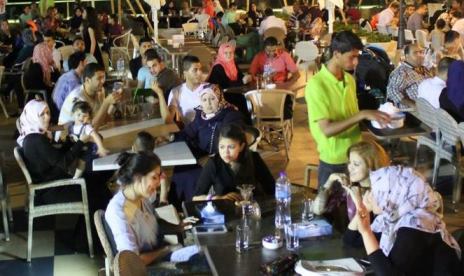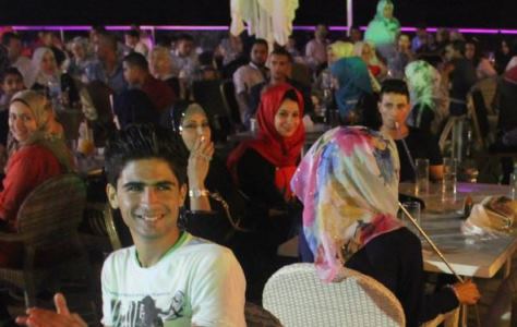 Mais ce qui est extraordinaire et surprenant quand on regarde attentivement les photos de cette page, c’est le décalage entre les femmes que l’on voit, et les femmes anéanties par l’islamisme. Pas de femmes dans les photos de la piscine, mais dans les photos de soirée, des tables mixtes où les femmes sont voilées, mais sans excès, sont belles, fument, et de rares exceptions de femmes tête nue sont également visibles.