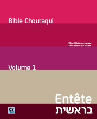 Les Editions Elkana rééditent le travail considérable de M. Chouraqui, qui s’est enrichit d’annotations et de commentaires préparés et rédigés par Francis Meir et Cyril Aslanov, et le présentent cette fois-ci sur une double page avec le texte original en hébreu d’une part et en face sa traduction. Le premier volume d’une série de cinq – équivalent aux cinq livres de la Torah – s’intitule l’Entête (la Genèse).