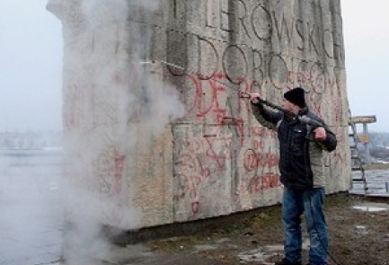 De nos jours, un monument de pierre marque l’emplacement dans lequel plus de 10.000 juifs polonais ont été exterminés (photo ci-dessus, dans laquelle ont peut voir le monument peint de graffitis antisémites ! ).