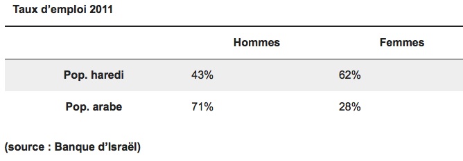 La population juive ultraorthodoxe, qui représente la moitié des pauvres en Israël, accorde une grande importance à l’étude des textes de la tradition juive (Thora, Talmud…). Aussi le taux d’activité des hommes est particulièrement faible. Dans le cas de la population arabe, c’est le taux d’activité des femmes qui est très faible. Elles n’entrent pas sur le marché du travail pour des raisons culturelles.