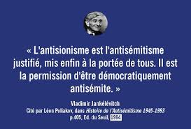 Brigitte Stora convoque Jankélévitch : l’antisionisme était la trouvaille miraculeuse, l’aubaine providentielle qui [réconcilia] la gauche anti-impérialiste et la droite antisémite, ajoutant que en conséquence l’antisionisme [donnait] la permission d’être démocratiquement antisémite[2].