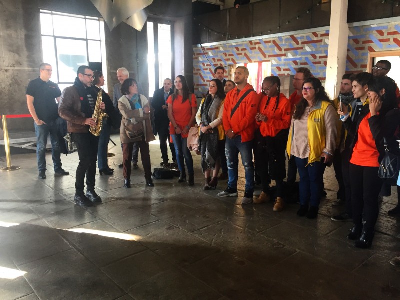 Le Premier Magistrat de France a été accueilli sur les accents de la Marseillaise entonnée par des jeunes aux couleurs de leurs associations soutenus par un saxophoniste de talent.