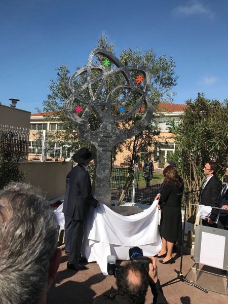 Après un dépôt de gerbes, un arbre de vie aux couleurs multiples, une sculpture offerte par Charles Stratos a été dévoilé dans la cour de l’école, qui pour la première fois depuis l’attentat, a été ouverte au public.