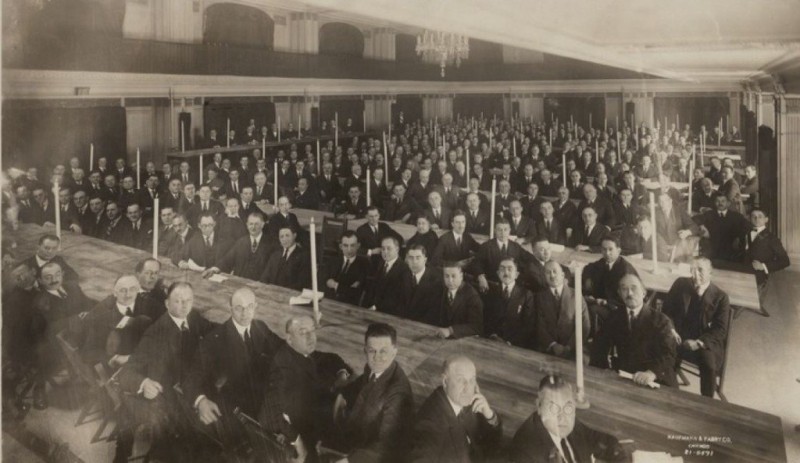 Depuis quelques années un des conservateurs de la Librairie Nationale d’Israël tentait de décrypter une photo étrange : quelques 800 hommes, de toute évidence de la bourgeoisie, dans un grand salon de la ville de Chicago, assis autour de longues tables, étrangement vides, ornées seulement de longues bougies.