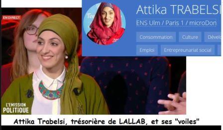 T’en souvient-il, Lecteur, des revendications de la femme voilée dans cette émission politique sur France 2 ? Lallab, déjà. Attika Trabelsi, militante présentée comme individu lambda, normalienne de son état, venue nous expliquer que le discours contre l’islamisme et contre la bigoterie des voilées blessait et violentait ses semblables, suivant en cela la stratégie d’islamisation de conquête de l’Europe par le monde musulman, l’affichant clairement, son projet de conquérir l’espace public et de plier notre société à sa vision pathologique des rapports hommes-femmes- , tout cela pendant que Lallab, donc, faisait sur twitter la promo de celle qui n’était pas moins que sa trésorière : Ce soir on a besoin de votre soutien et de beaucoup de love pour cet exercice très difficile : faire entendre les voix plurielles des femmes musulmanes ! L’émission commence à 21h mais notre intervention sera vers 21h40. Lallab qui ce mois-ci a demandé à l’État, cet État que les racialistes auxquels elles appartiennent dénoncent comme néocolonial et islamophobe, l’attribution de trois services civiques financés par le contribuable pour développer leurs activités prosélytes.